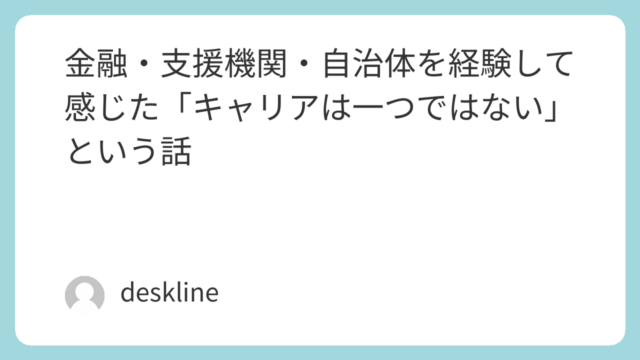 金融機関・支援機関・自治体と異なる立場を経験してきた中で感じた「キャリアは一つではない」という考え方を紹介。転職や異動でキャリアに迷う方へ、複数分野の経験から得た視点をまとめました。
