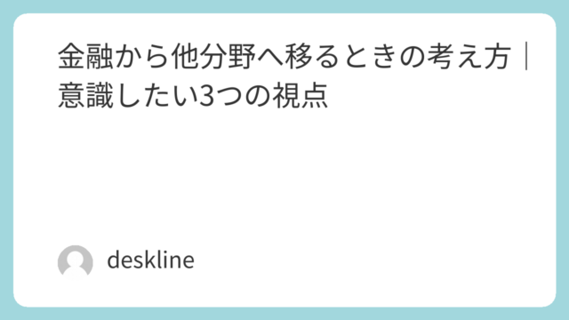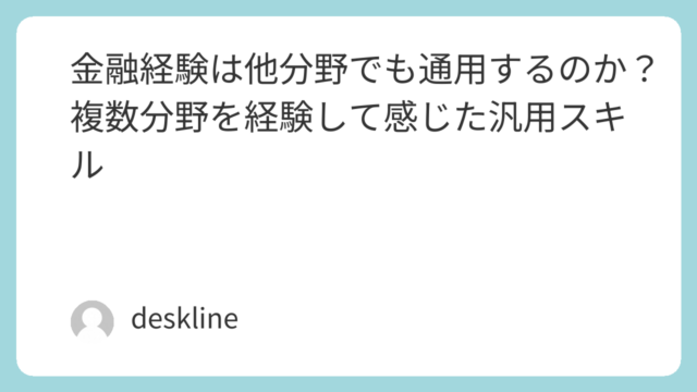金融から他分野へ移る際の考え方を解説。業務要素分解・環境理解・経験翻訳の3視点から、金融経験を他分野で活かす方法を整理します。