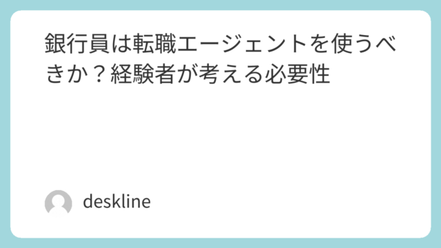 銀行員の転職でエージェントは使うべきか。経験者の視点から、必須ではない理由と有効なケース、自己応募との違いを整理します。