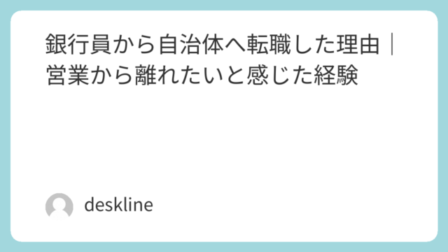 銀行員から自治体へ転職した理由を経験ベースで解説。金融だけでは見えない地域課題、行政の役割、立場を変えて地域に関わる意味について整理します。