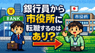 銀行員から公務員へ転職 銀行員から市役所に転職するのはあり?仕事内容とミスマッチを整理【出戻り銀行員が解説】 銀行員から市役所に転職するのはあり?仕事内容の違いからミスマッチの原因を整理。短期プレッシャー構造と長期ストレス構造の違い、向いている人の特徴、転職前に確認すべきポイントを解説します。 銀行員から公務員へ転職